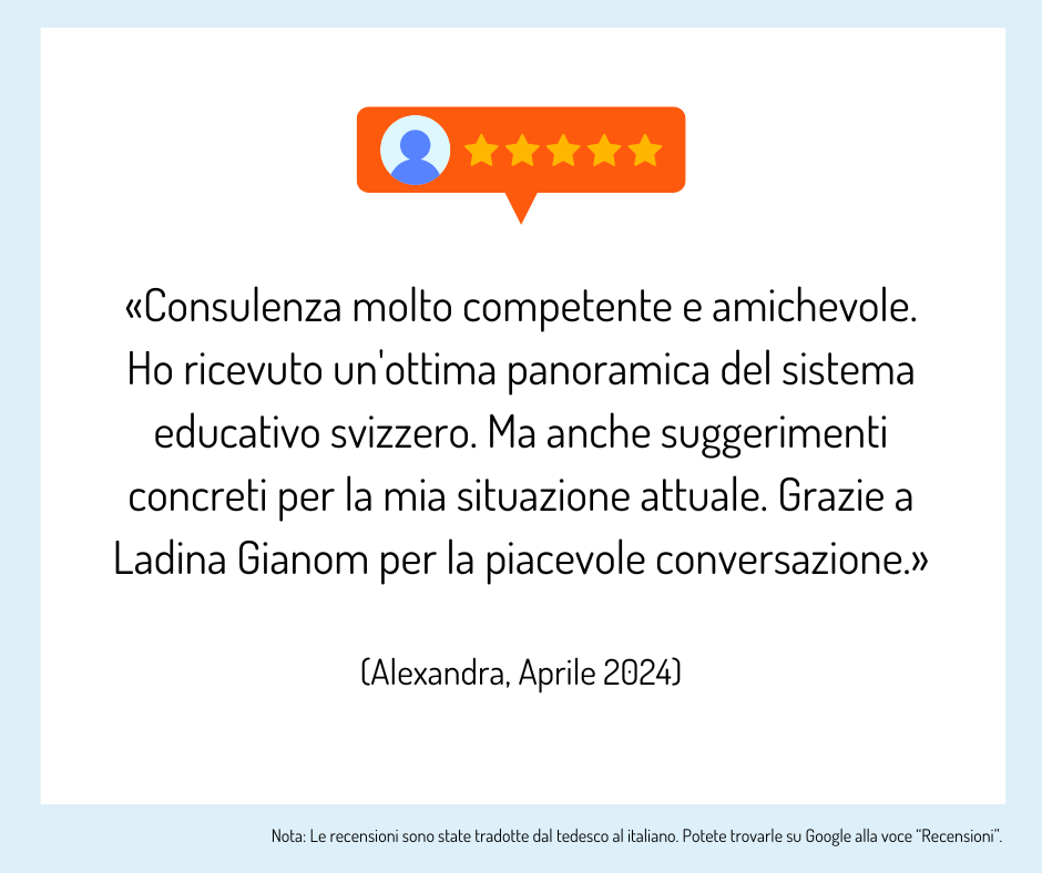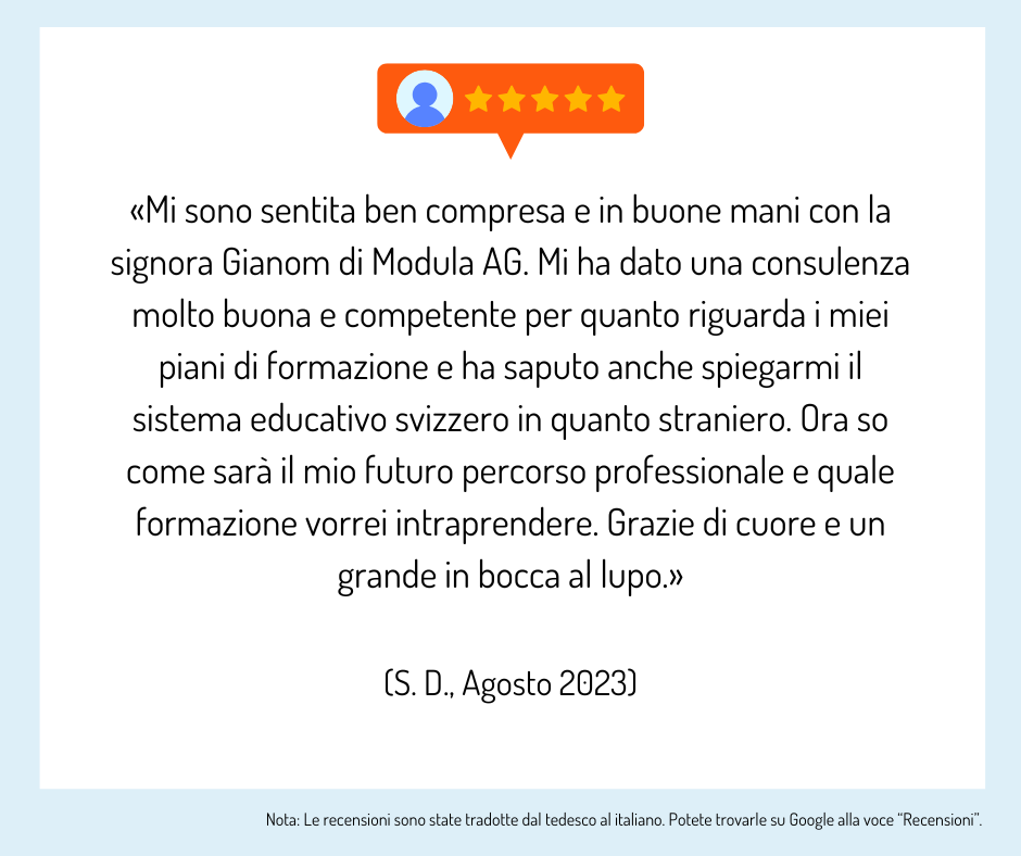 » Orientamento formativo gratuito (valore: CHF 150.–)