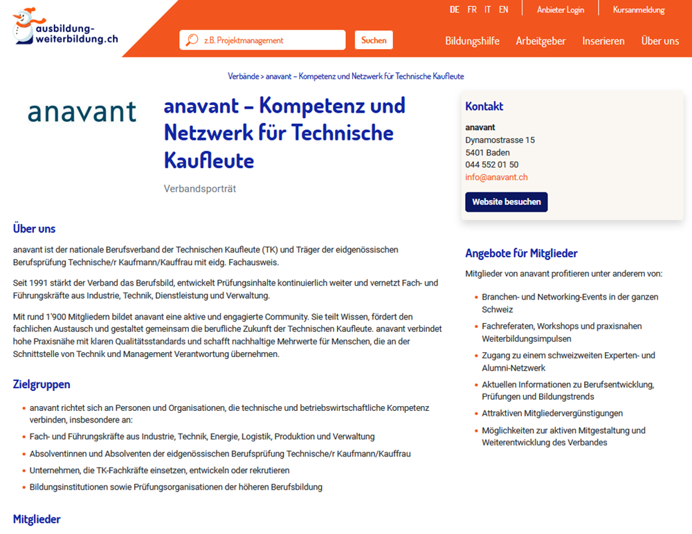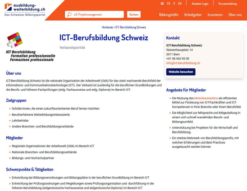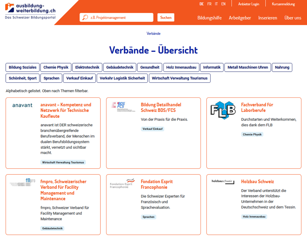 Ihr Verbandsporträt auf dem beliebten Schweizer Bildungsportal